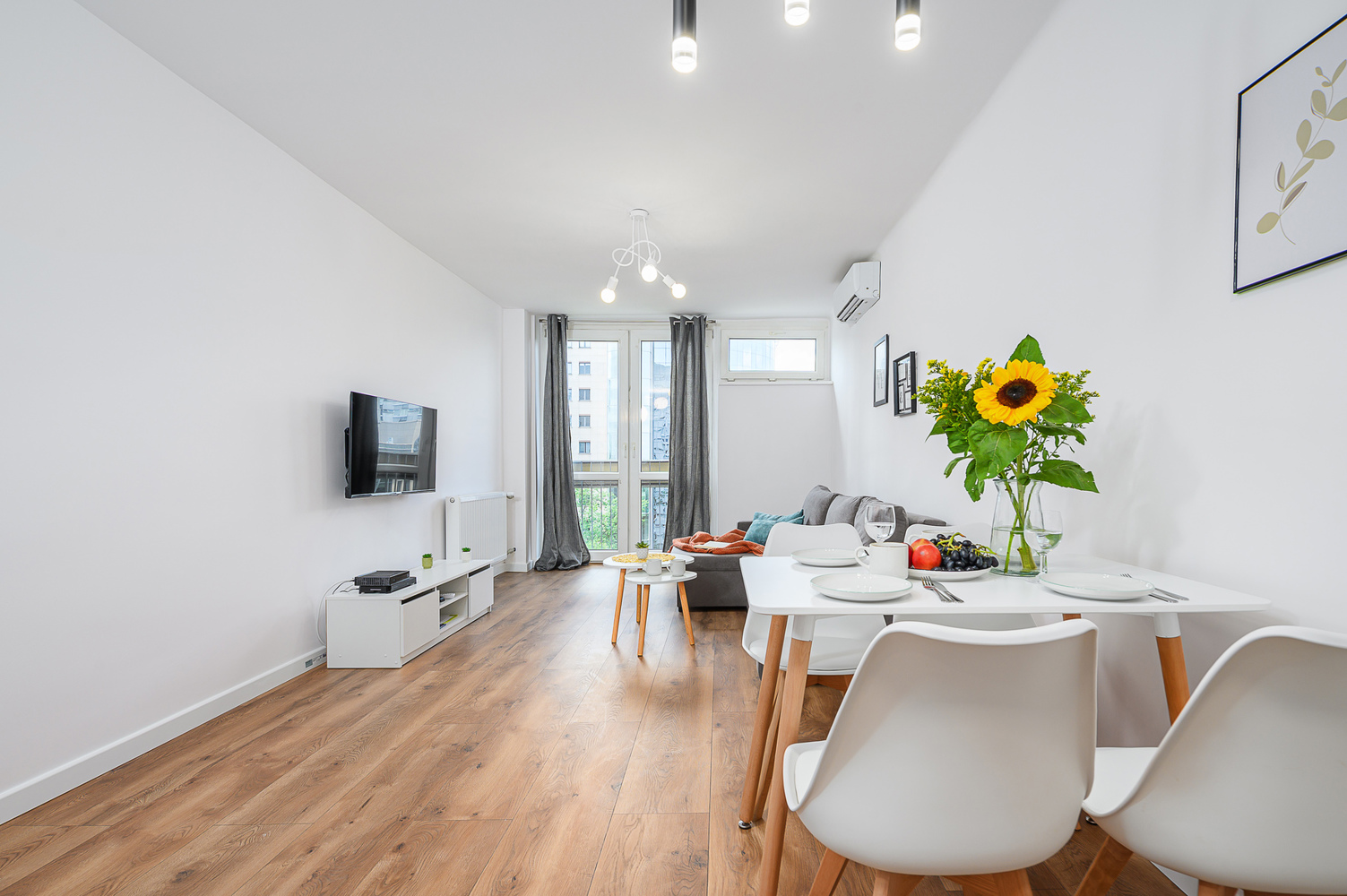 Centralnie położony apartament dla 4 osób z klimatyzacją. Mieszkanie składa się z sypialni, salonu, aneksu kuchennego i łazienki. Znajdziemy tu wszelkie udogodnienia pozwalające na komfortowy pobyt, takie jak: telewizor, suszarka do włosów, dobrze wyposażona kuchnia, a także zestaw do prasowania. Zlokalizowany w ścisłym centrum, blisko stacji metra Rondo ONZ i największych biurowców. W okolicy znajdują się restauracje oraz wszystkie niezbędne punkty usługowe.
