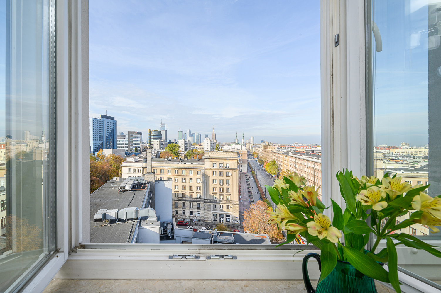 Styl i wygoda w sercu Warszawy! Apartament na 8. piętrze zabytkowej kamienicy z 1913 roku, przy Placu Unii Lubelskiej i ul. Marszałkowskiej, z widokiem na Pałac Kultury i "Warszawski Manhattan". Idealny dla gości biznesowych – tu komfort pracy łączy się z wyjątkową panoramą miasta.