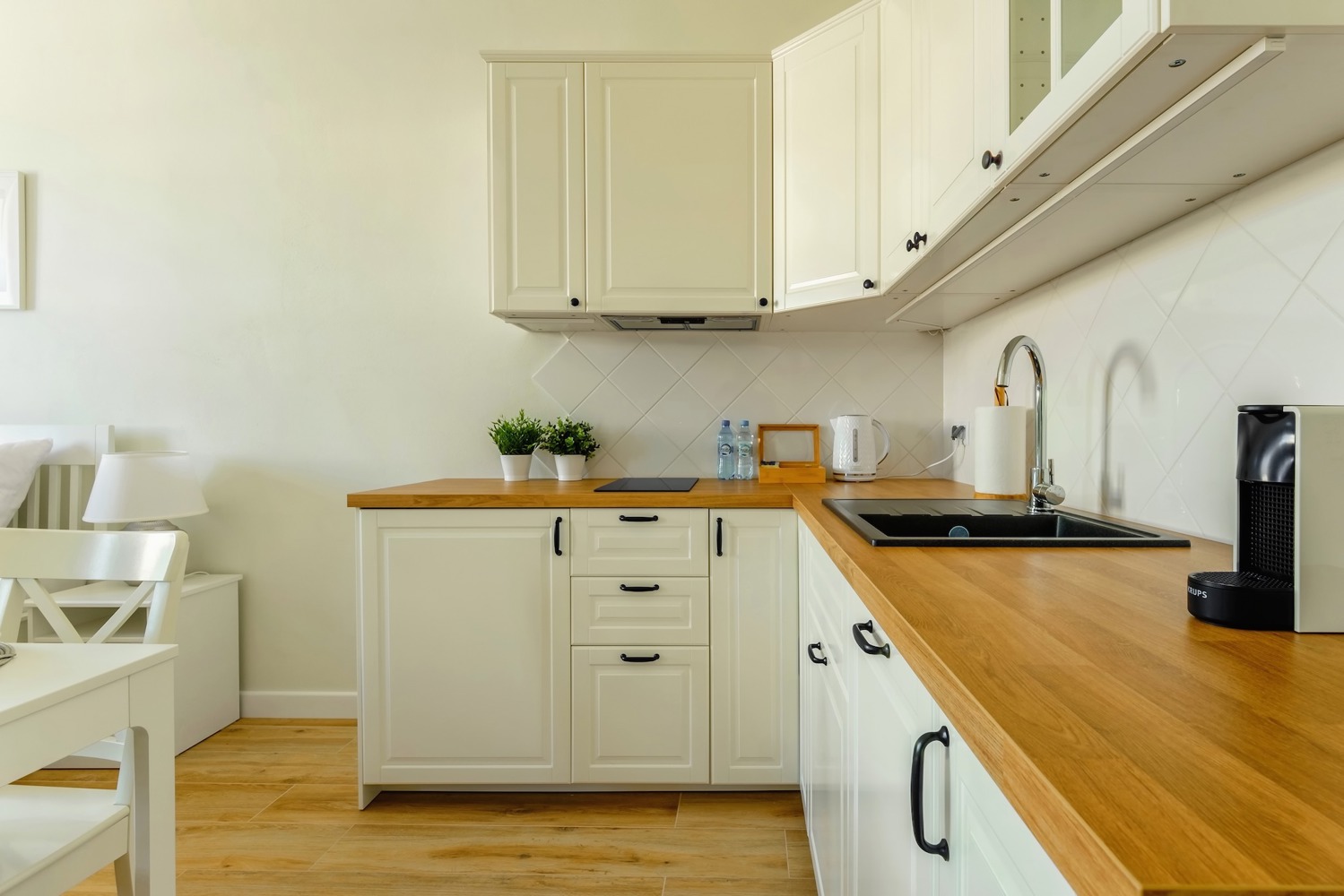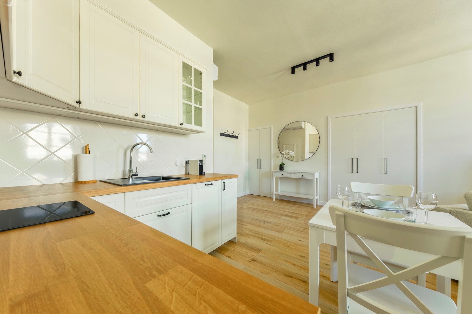 Apartament składa się z jednego pokoju z kuchnią oraz łazienki. Jego całkowita powierzchnia to 41m2. Otwarta na pokój kuchnia jest wyposażona w zmywarkę, płytę indukcyjną, mikrofalówkę, czy ekspres do kawy. W części sypialnianej znajduje się duże, wygodne łóżko, dwa fotele wypoczynkowe oraz telewizor z płaskim ekranem. Łazienka została wykończona w jasnych tonach marmuru i wyposażona w prysznic typu walk-in. Całość dopełniają detale - ciepłe oświetlenie i starannie dobrane dodatki - tworzące przytulną, spokojną atmosferę idealną do wypoczynku po dniu zwiedzania Lublina.